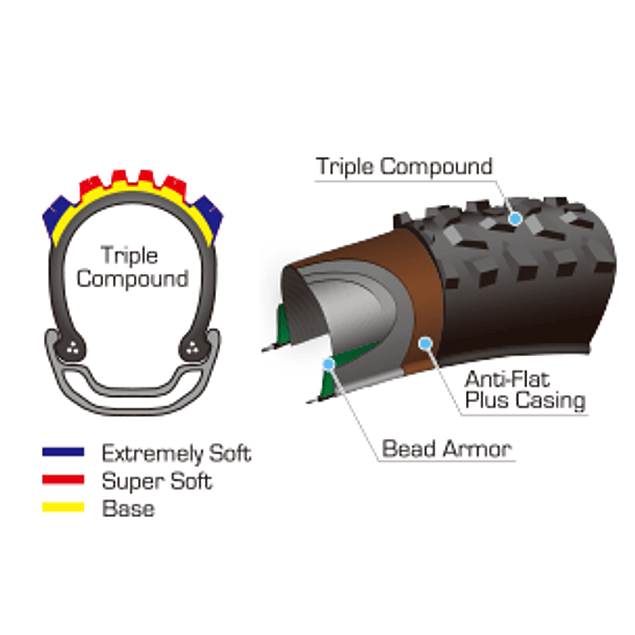 Triple compuesto / ANTI-FLAT Plus. Neumático con talón plegable.